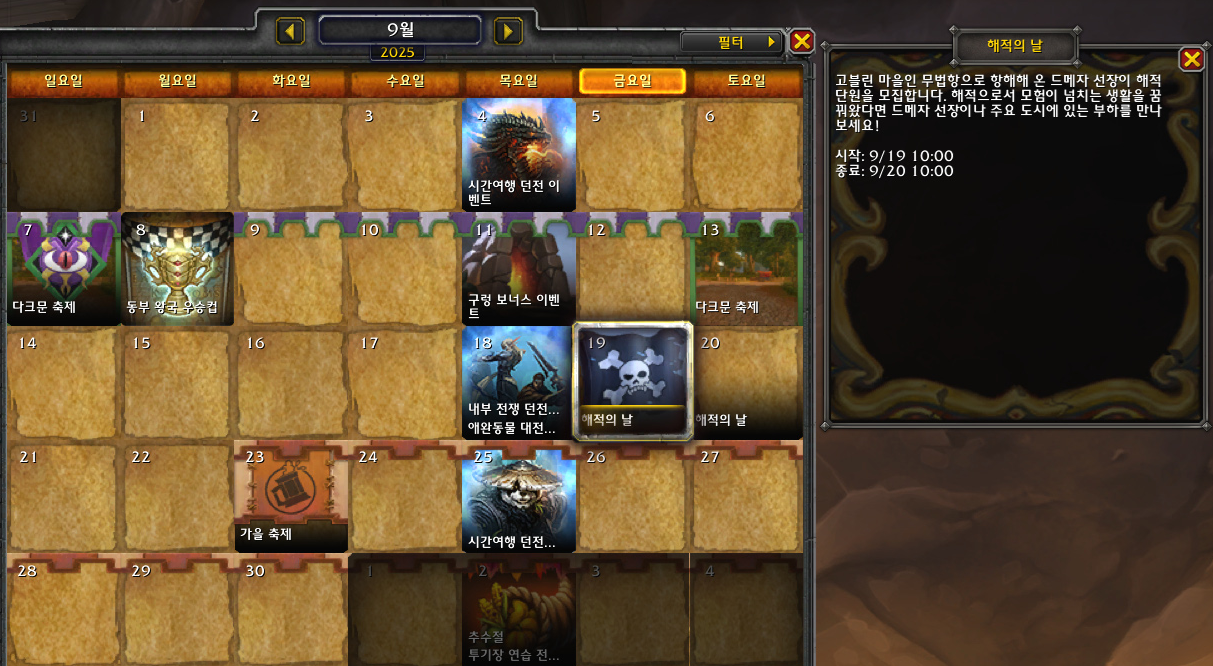 2025 해적의 날 이벤트 기간은 9월 19일 오전 10시부터 20일 오전 10시까지 입니다.