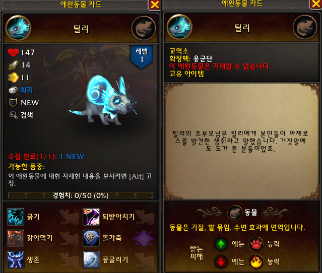 애완동물 수집을 좋아하시는 분들께 아주 좋은 보상입니다.
