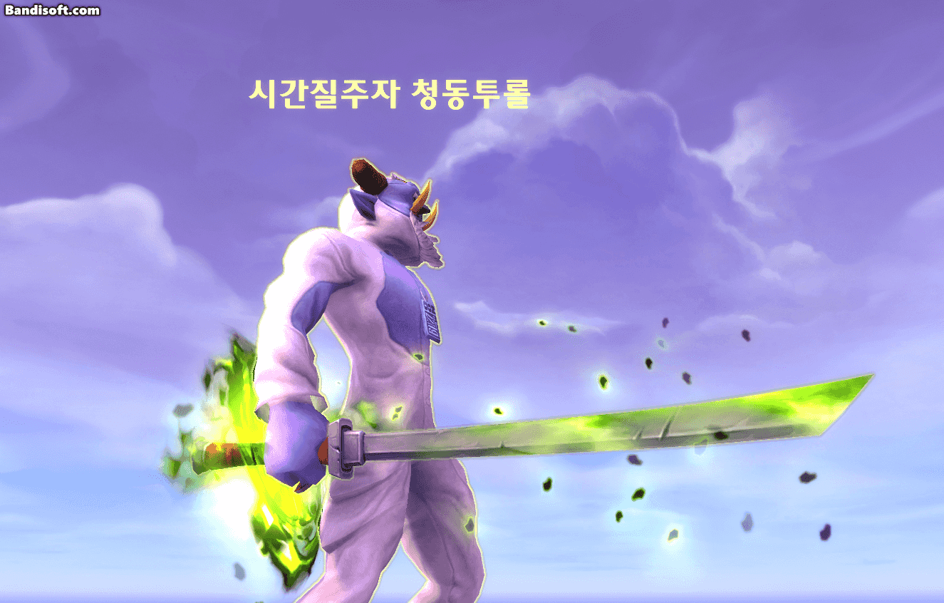 이펙트 잘 보이게 판다리믹스 때처럼 하얀 복장, 큰 검으로 형변했습니다.