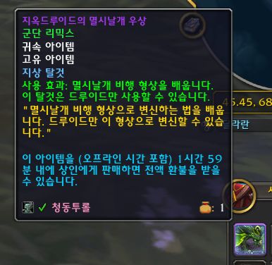 이 탈것은 드루이드만 사용할 수 있어서 본섭 캐릭터로 접속했습니다.
