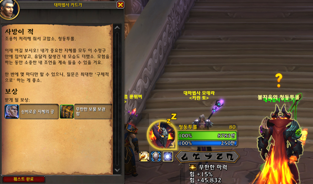 달라란의 보랏빛 성채에 있는 '카드가'한테 완료할 수 있습니다.