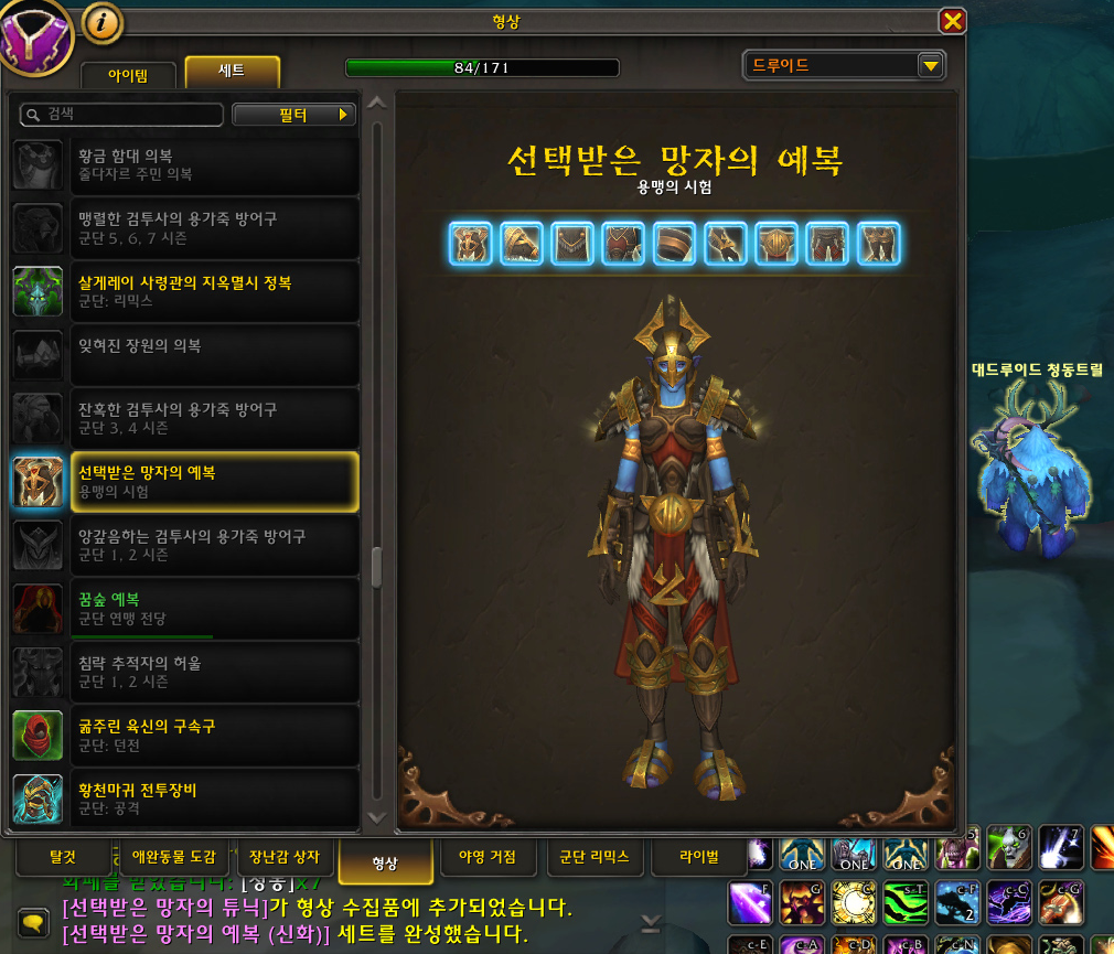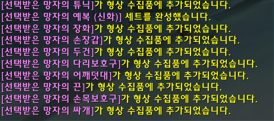 '선택받은 망자의 예복(신화)' 형상세트 획득 및 수집 완료!!