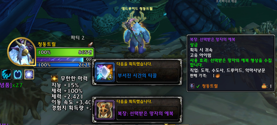 군단리믹스에서 드루이드로 가죽 형상세트를 획득하였습니다.