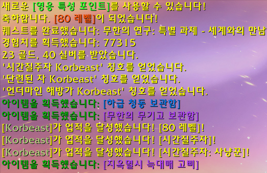 오늘 와우 군단리믹스에서 네 번째 만렙을 달성하였습니다.