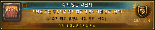 사냥꾼 또는 주술사로 죽지 않고 용맹의 시험 완료(신화).