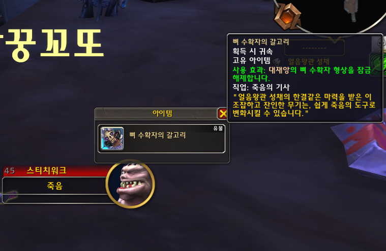 '뼈 수확자의 갈고리' 부정 죽음의 기사 유물 무기 히든 형상템 획득!!