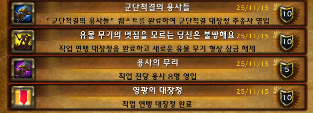 와우 군단리믹스에서 전사로 렙업하는 과정에 직업 대장정을 하고 있었는데 거의 끝나갈 때 만렙 달성하였습니다.