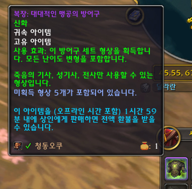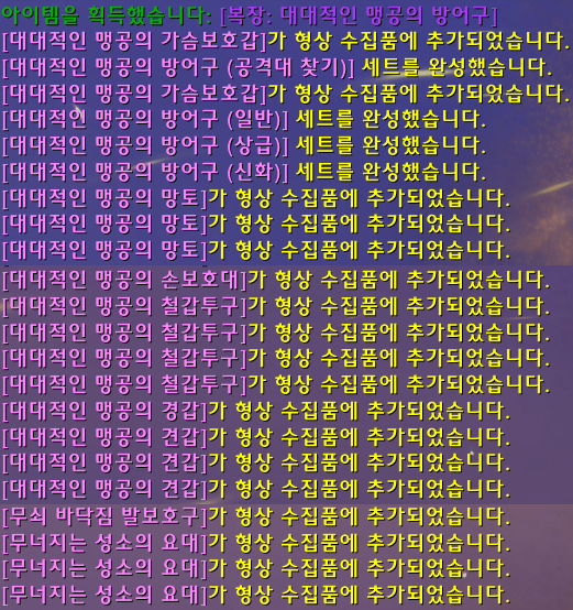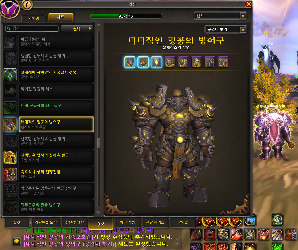 '대대적인 맹공의 방어구(신화)' 형상 세트 획득 및 수집 완료!!