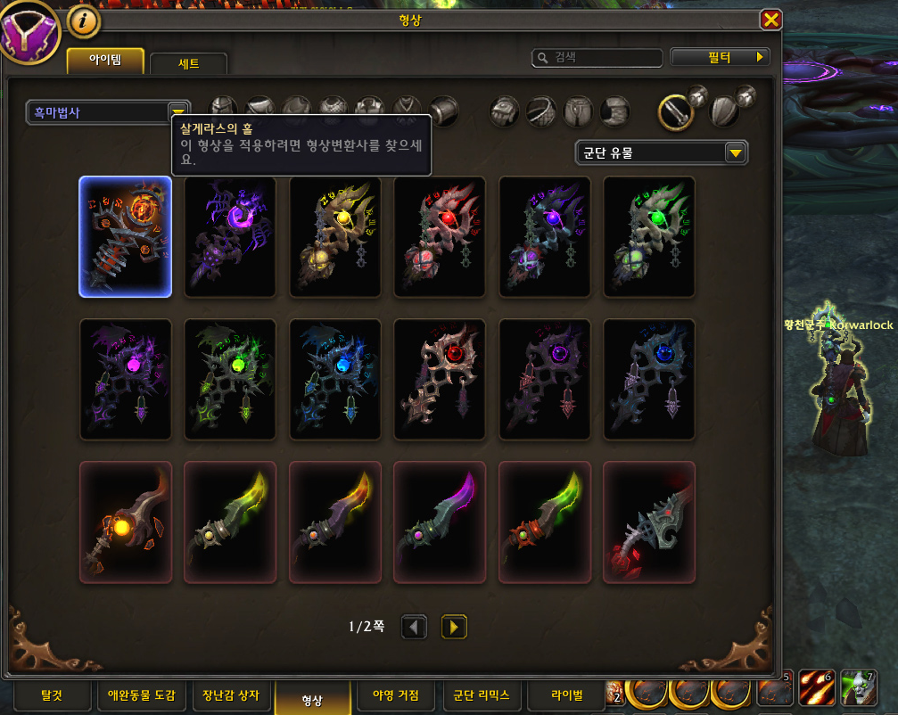 죽기는 군단리믹스 캐릭터는 아니었고 본섭 캐릭터로 했었는데, 지금 작성할 글은 리믹스로 키운 흑마법사로 히든 형상 획득한 글입니다.