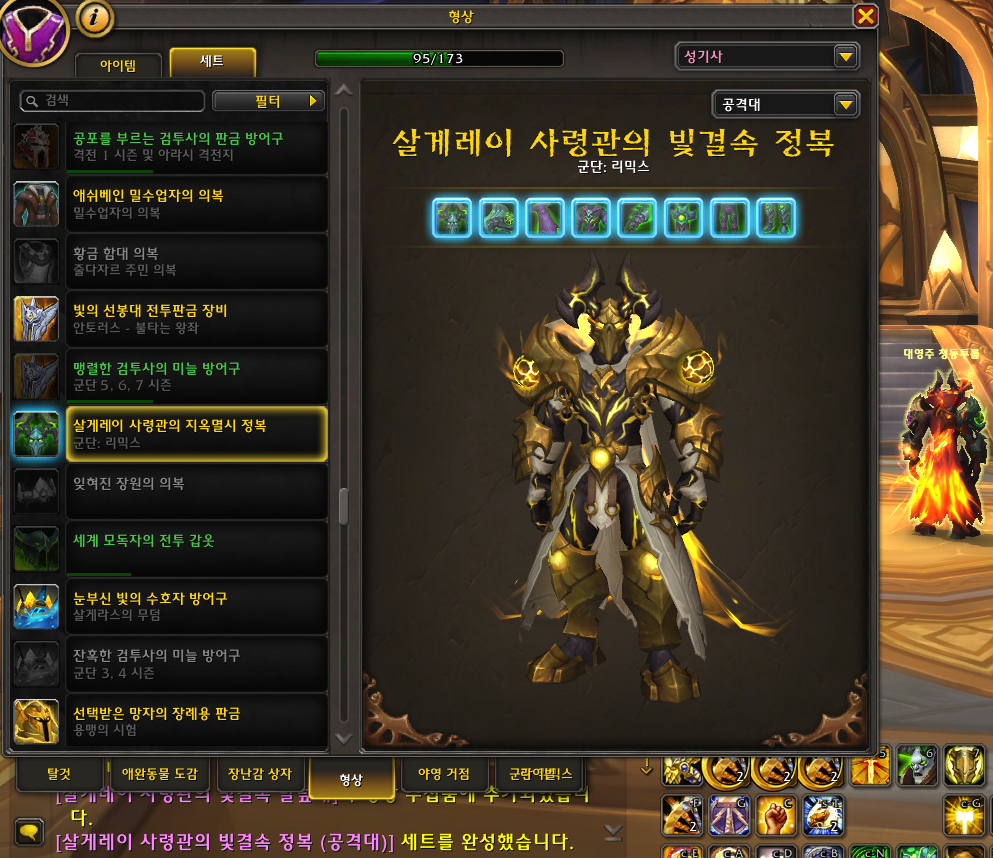 '살게레이 사령관의 빛결속 정복(공격대)' 형상 세트 획득 및 수집 완료!!