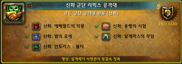 | 와우 '무한한 혼돈의' 칭호 획득 & [영웅 군단 리믹스 공격대] 군단리믹스 업적 달성! (0) | 2025.11.20 |