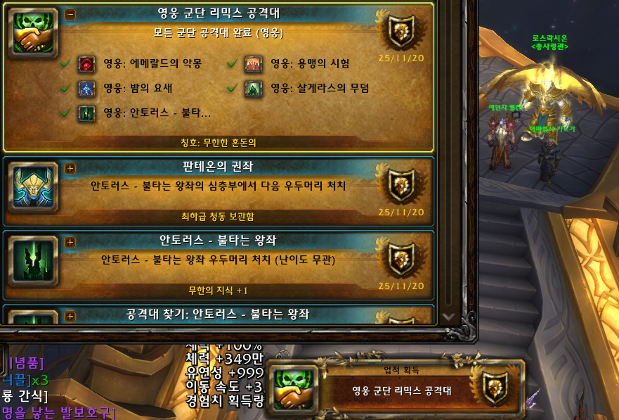 와우 군단리믹스 만렙 달성!! (업적 [시간질주자] 달성)