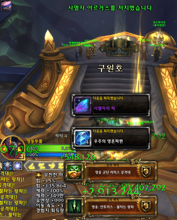 그리고 오늘 안토러스 일영신 가는 공격대에 참여하여 영웅 사멸자 아르거스를 처치하자마자 퀘템을 획득했습니다.