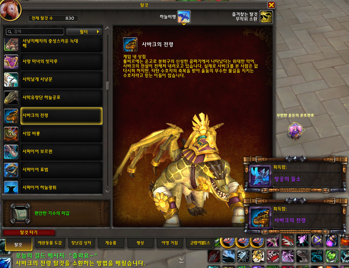'사바크의 전령' 하늘비행 탈것 획득 및 수집 완료!!