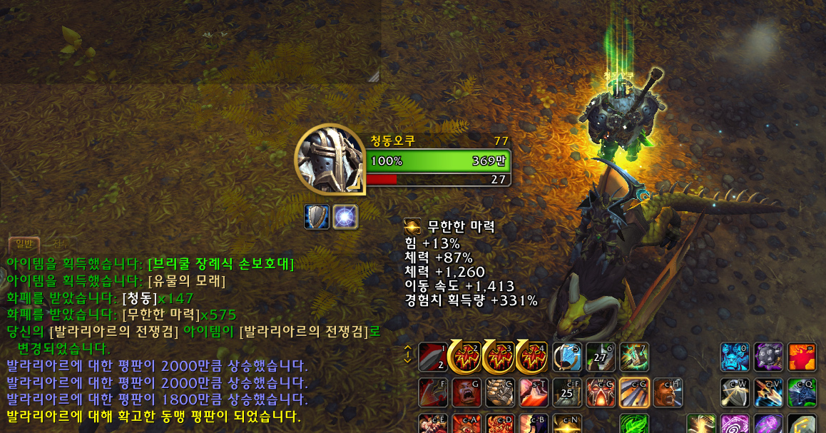군단 시간여행 던전 기간에 상인한테서 시간왜곡의 훈장으로 발라리아르 평판을 올릴 수 있는 템을 구입할 수 있지만, 보유 훈장이 많지 않았고 훈장 모으는 것도 시간 걸리는 일이었습니다.