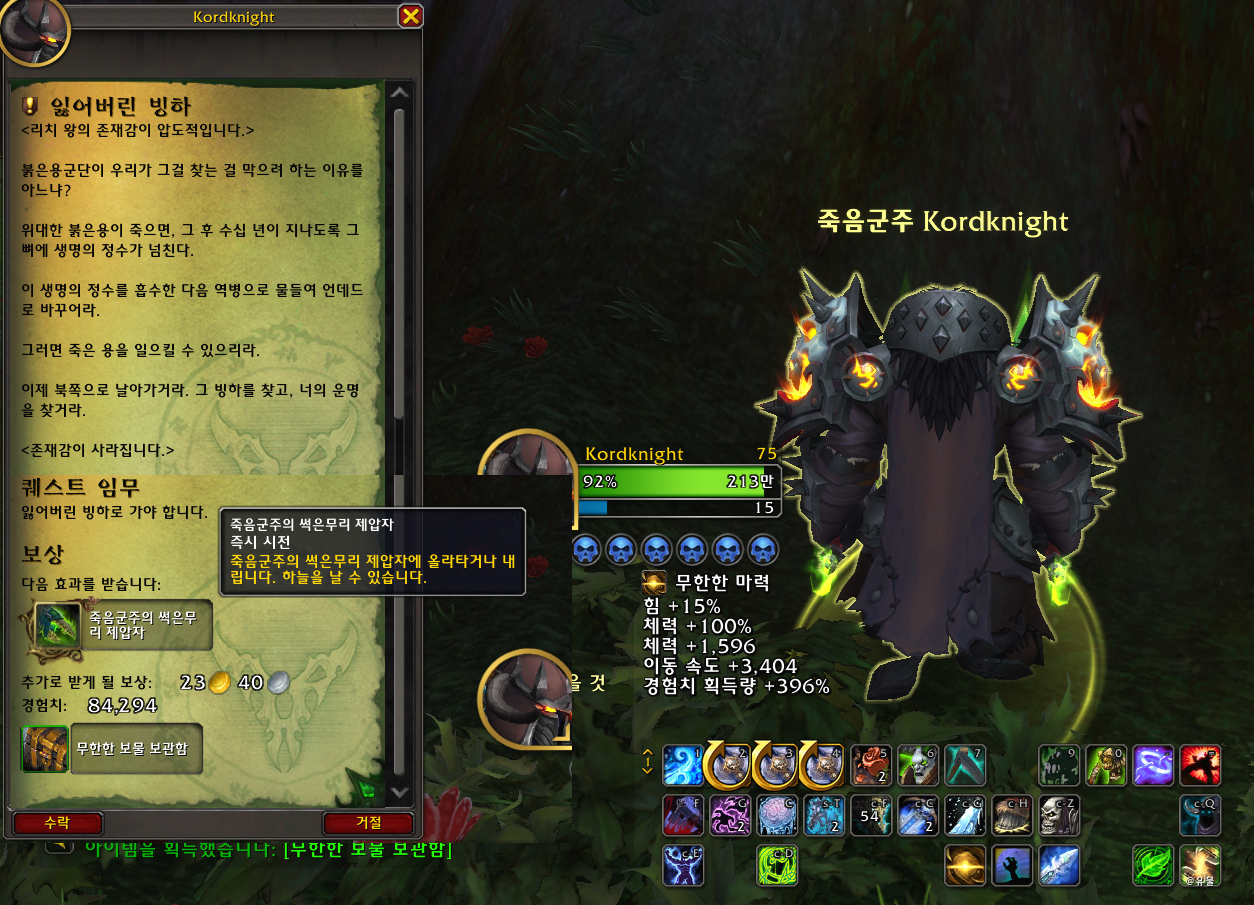 군단리믹스에서 죽음의 기사로 직업대장정을 완료하였습니다.