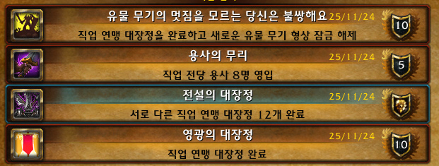 그리고 군단 확장팩부터 시작해서 지금까지 직업 연맹 대장정 12개(12직업)를 모두 완료하여 [전설의 대장정] 위업도 달성했습니다!