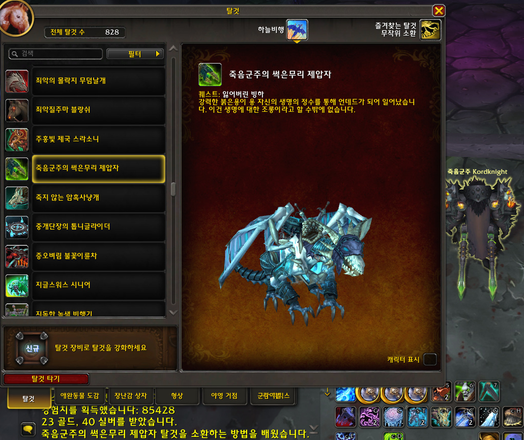 '죽음군주의 썩은무리 제압자' 죽음의 기사 하늘비행 탈것 획득 및 수집 완료!!