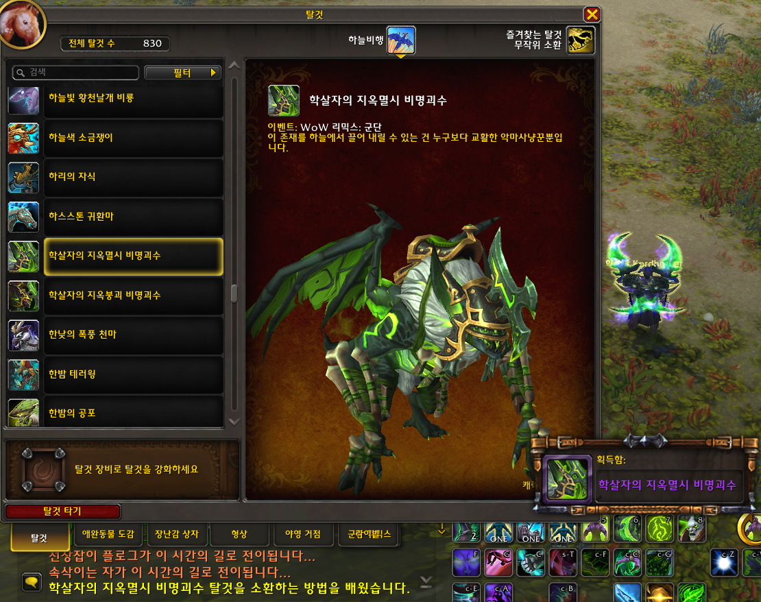 | '지옥멸시 썩은무리 제압자'(와우 군단리믹스 업적 [시간질주자: 죽음의 기사] 완료 보상 탈것) (0) | 2025.11.28 |
