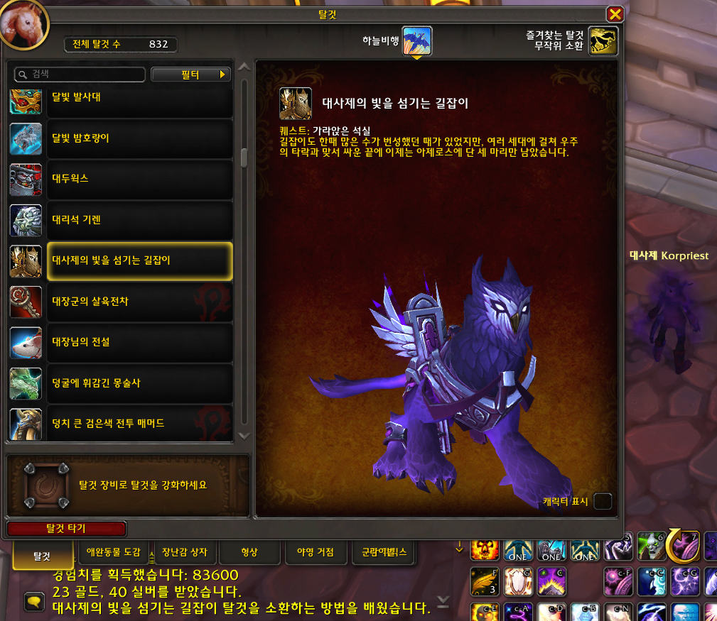 '대사제의 빛을 섬기는 길잡이' 사제 하늘비행 탈것 획득 및 수집 완료!!