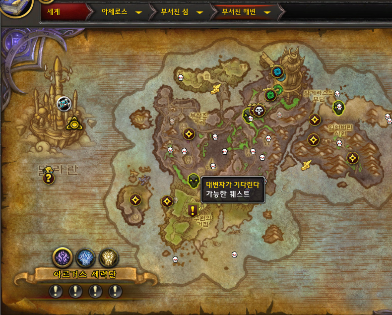그리고 부서진 해변으로 가서 마이애브한테 '군단척결의 용사들' 퀘스트를 수락하자마자