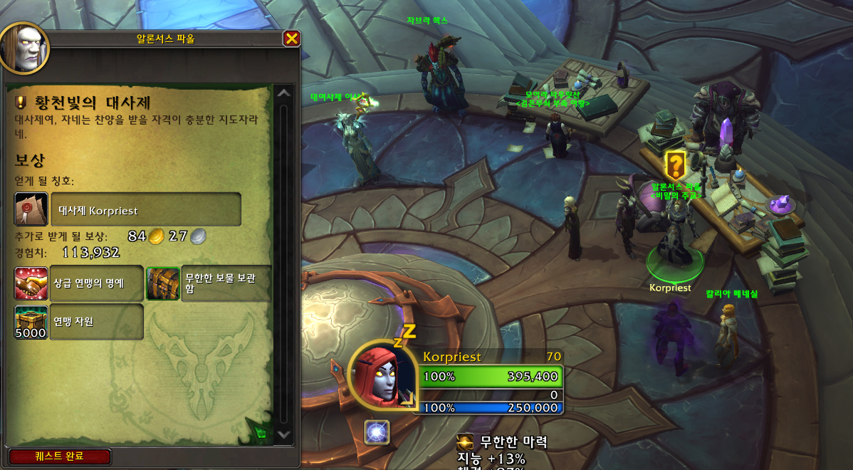 그래서 군단리믹스 덕분에 사제 직업 대장정을 진행했습니다.