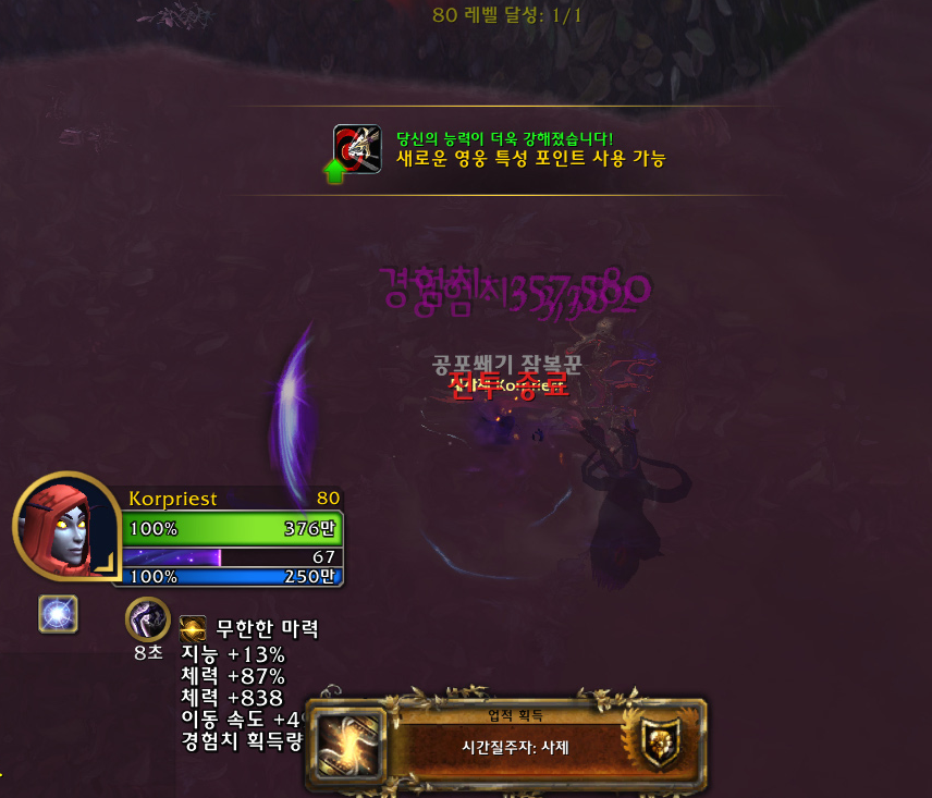 군단: 리믹스에서 사제 80레벨 달성.