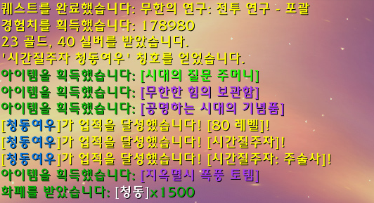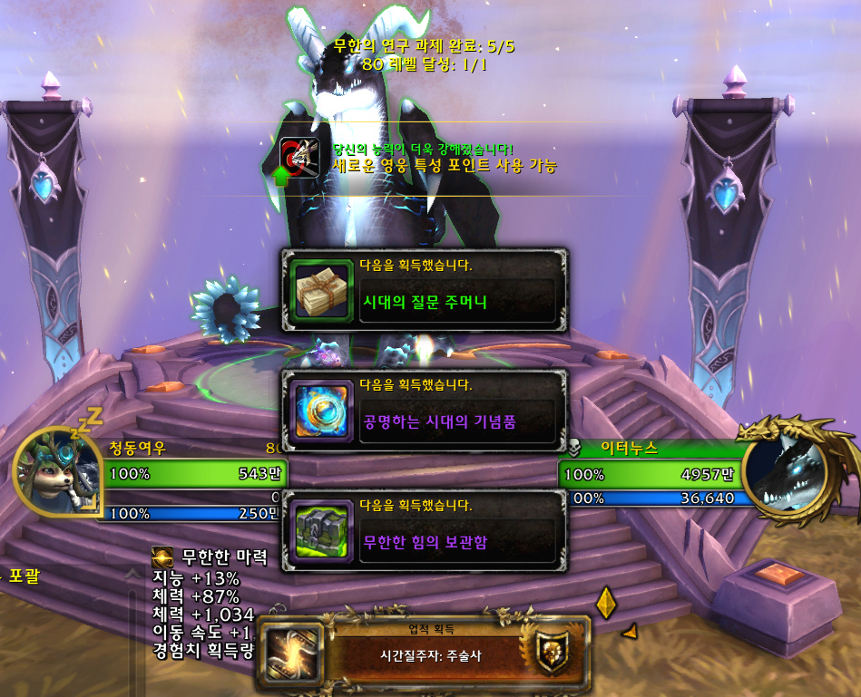 무한의 연구 과제를 완료한 것으로 군단리믹스 열두 번째 만렙을 달성하였습니다.