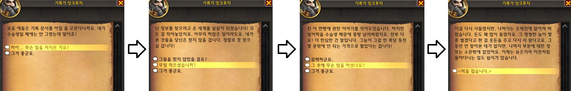 잉크포지와 선택지로 대화를 할 수 있는데, 선택지를 잘못 선택하면 다시 처음부터 대화해야 됩니다.