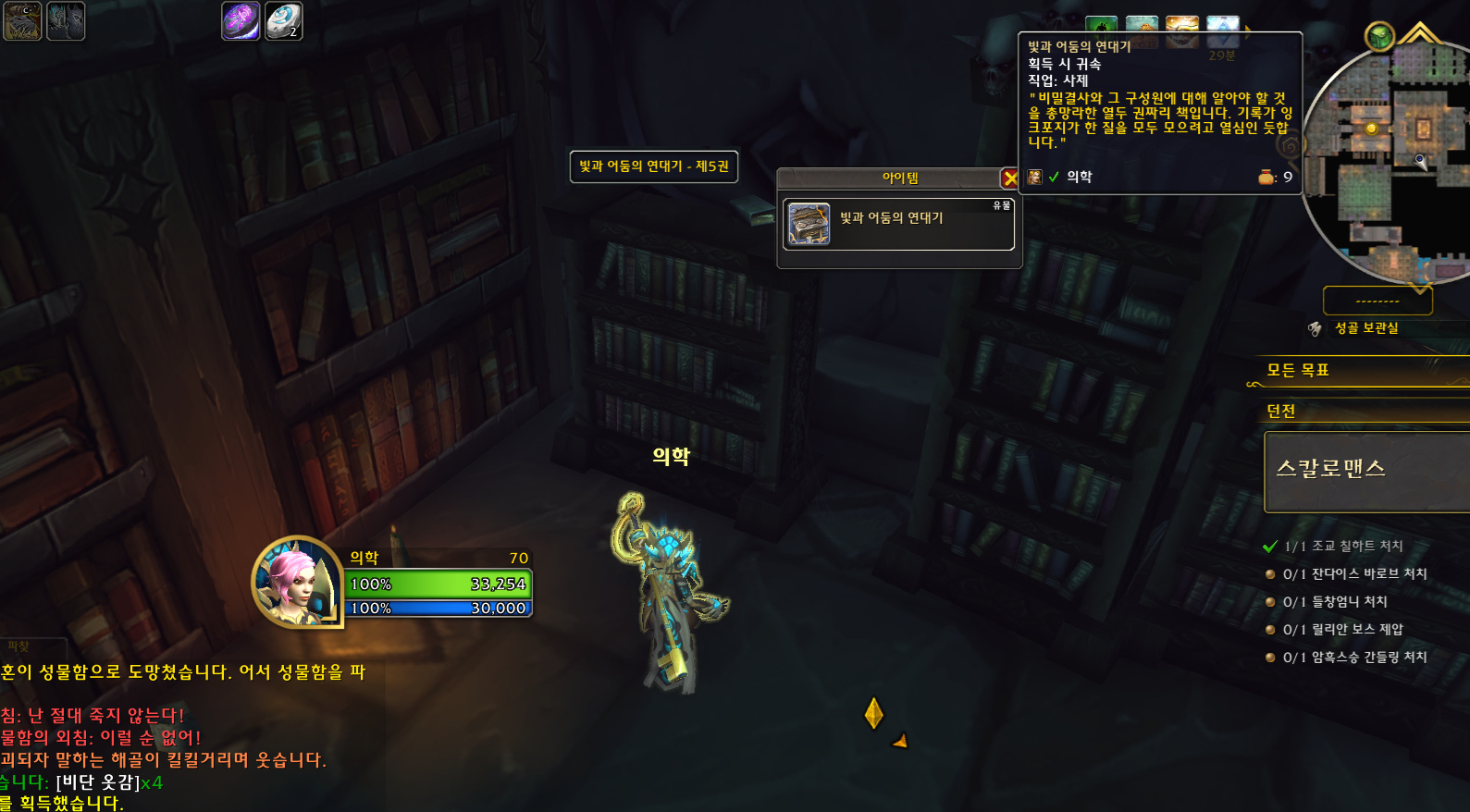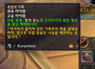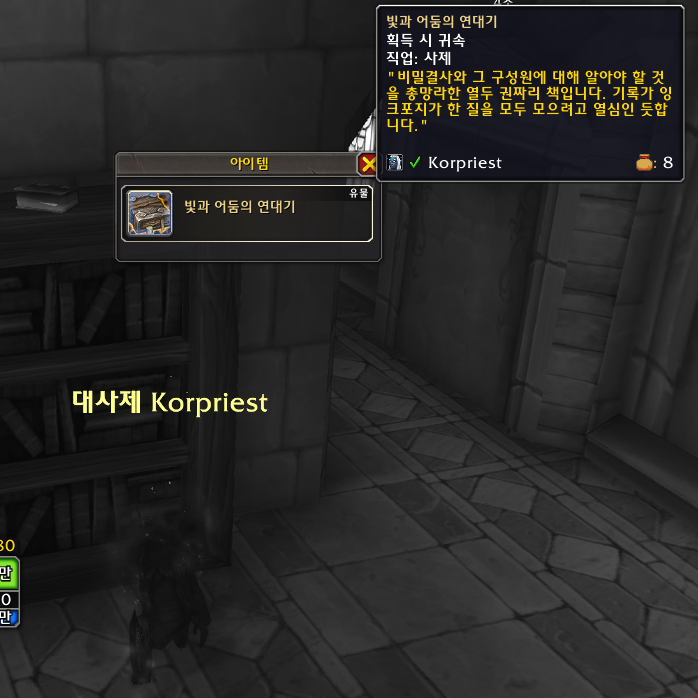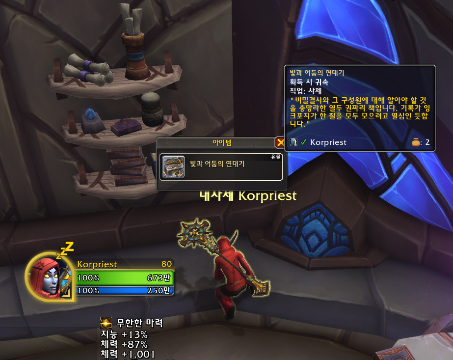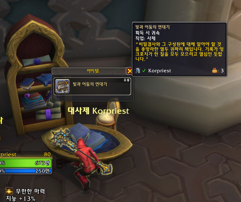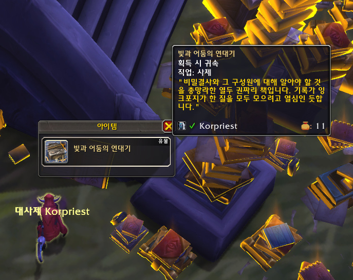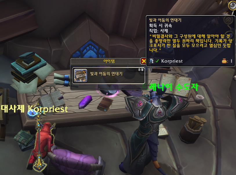 사제로 접속하기 전에 마법사로 비전 유물 무기를 구했었는데 신기하게도 수양 사제도 똑같은 과정으로 얻는 것처럼 보였습니다.