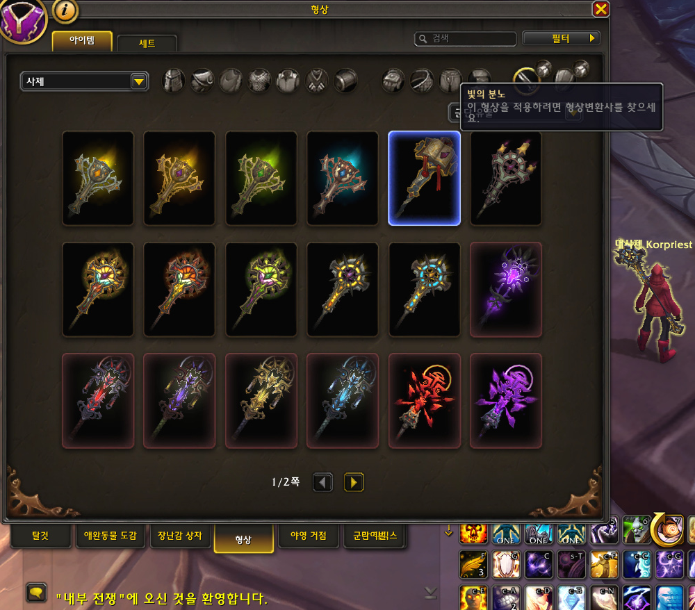 (히든룩 얻는 과정에 대한 정보는 구글에 '[와우 , 형상변환] 수양 사제 히든형상 (군단 유물무기) - 네이버 블로그' 글을 보고 따라했습니다.)