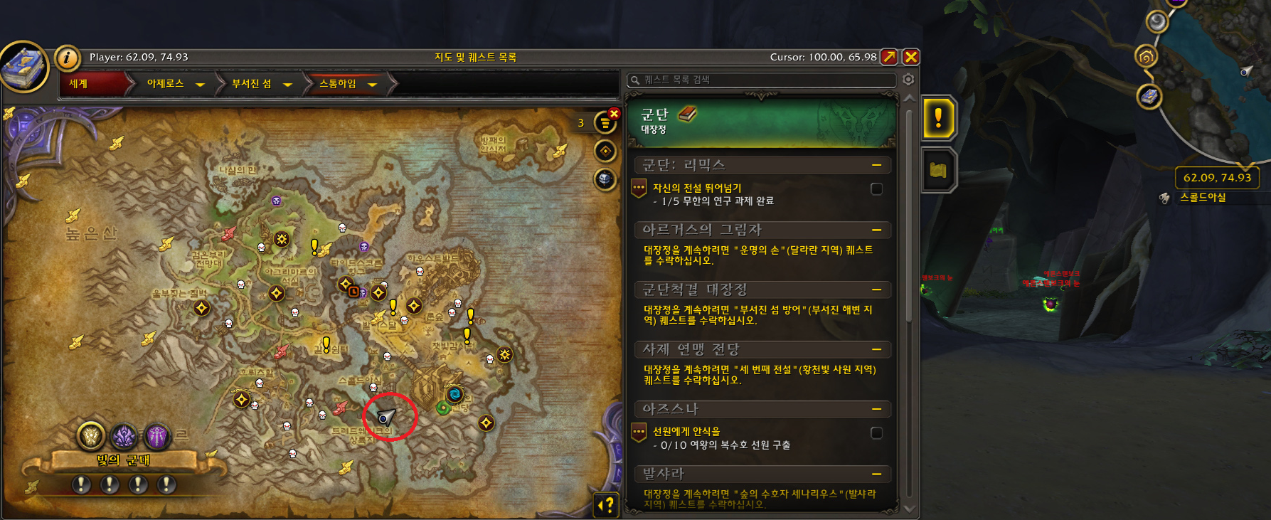 ⑨부서진 섬 달라란→오그리마/스톰윈드 포탈→수정노래 숲의 달라란 포탈을 이용해서 용의 안식처 신 하스글렌으로 날아가면 되겠습니다.