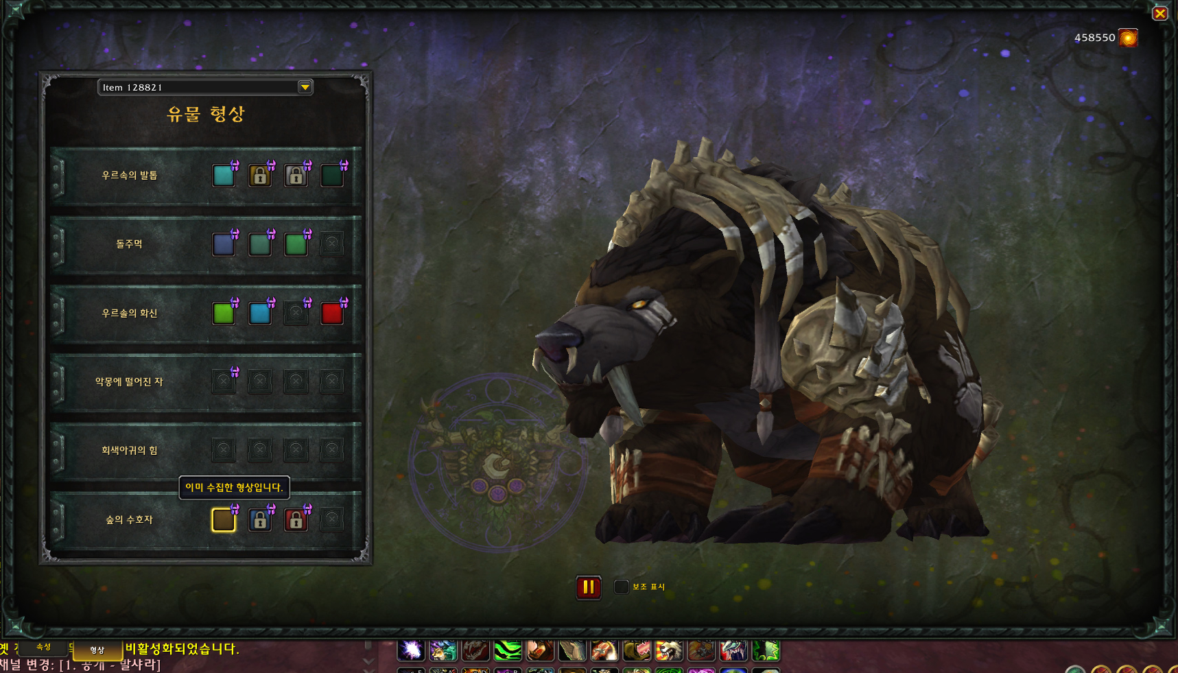 본섭에 있는 드루로 예전에 수호 히든을 이미 획득해서 재접속을 안 해도 이미 수집한 형상입니다.