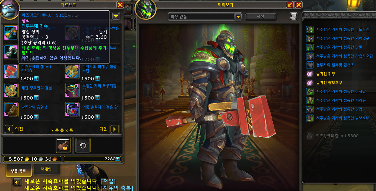 | '세계파괴자의 불타는 갑주'(와우 군단 방어 전사 유물무기 히든 형상) (0) | 2025.12.04 |