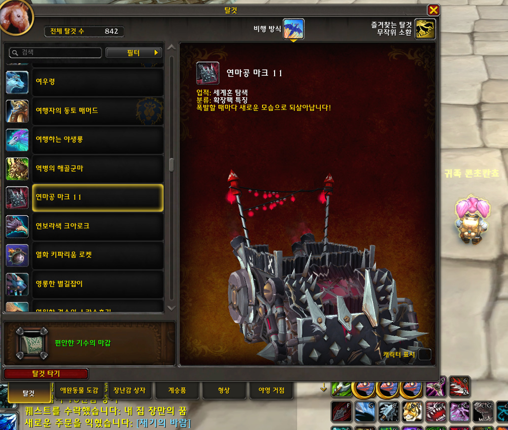 탈것창을 열어서 보상 탈것을 확인해보았습니다.