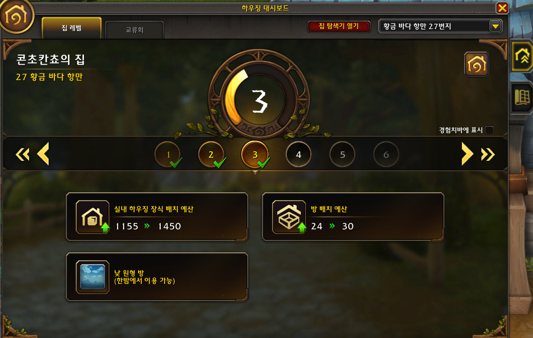 하우징 대시보드를 열어보니 얼라이언스 캐릭터로 구입한 부지로 순간이동이 가능했습니다!