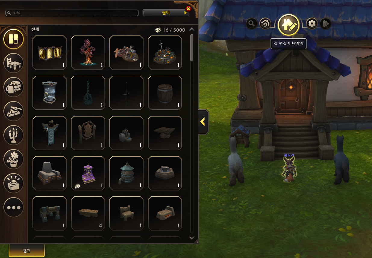 화면 상단에 집 편집기가 뜨길래 눌러보니 호드 캐릭으로도 이곳을 편집할 수 있습니다!