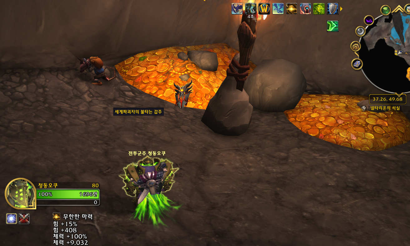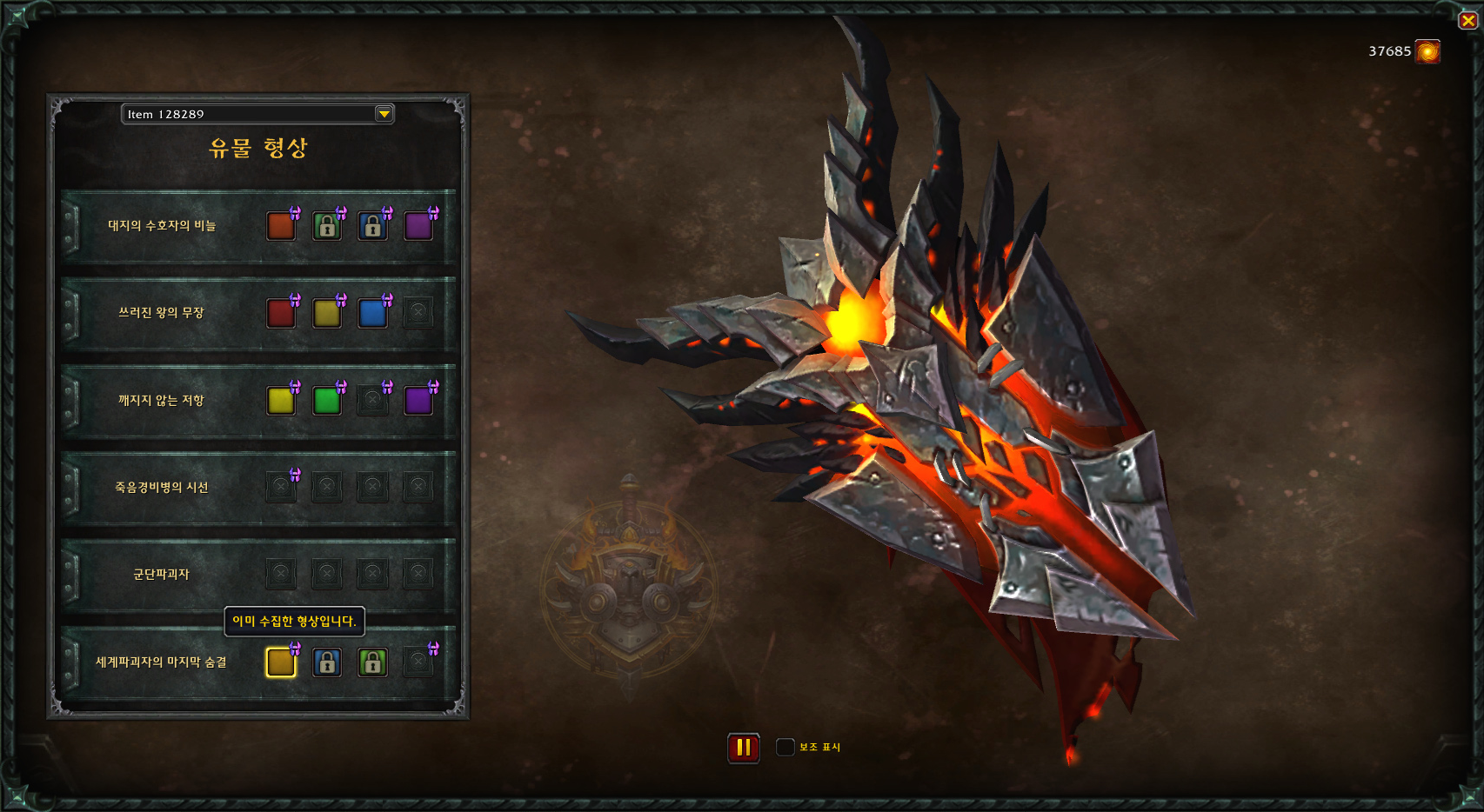와우 군단리믹스 전사로 어제 방어 전문화 유물 무기를 획득하고 높은산 넬타리온의 석실에 있는 히든 형상을 획득하러 가봤는데 메시지가 안 나왔습니다.