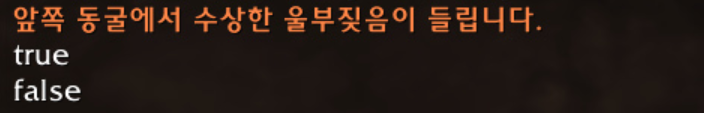 이걸 입력했을때 채팅창에 첫번째 줄에는 true가 나와야 되고 두번째 줄에는 false가 나와야 합니다.(true/false)