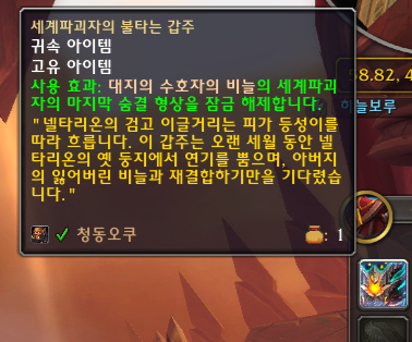 '세계파괴자의 불타는 갑주' 방어 전사 유물 무기 히든 형상템 획득!!