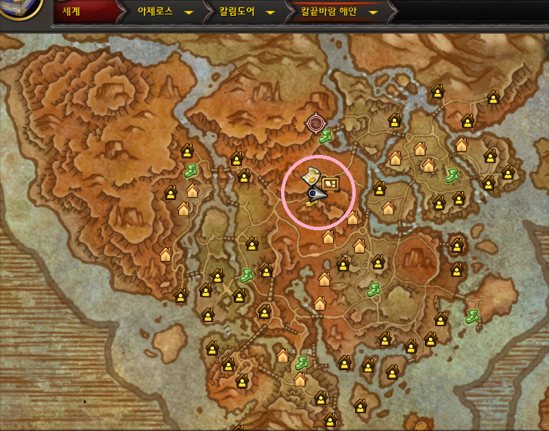 아래 지도의 핑크색 동그라미가 상인들이 있는 위치입니다.
