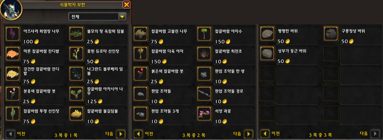 이번 글은 호드 칼끝바람 해안의 상인 정보입니다.