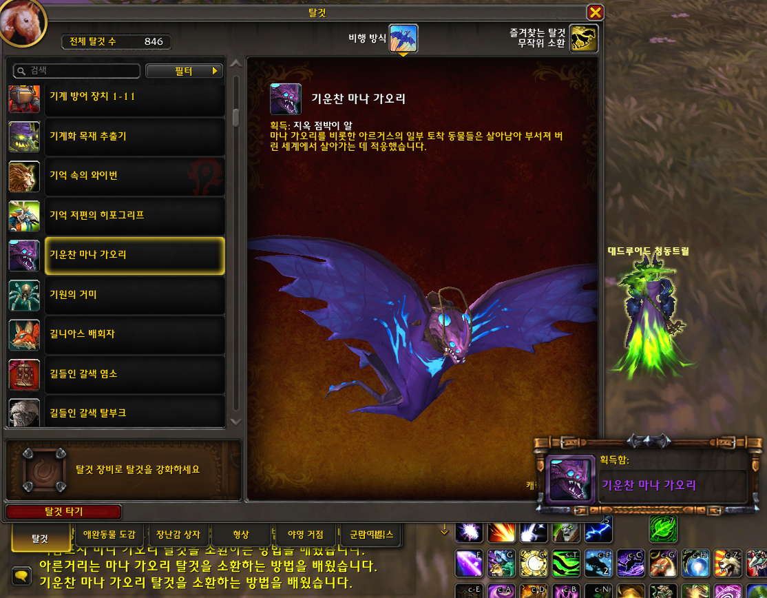 와우 군단리믹스의 무한의 시장에서 탈것을 구입했습니다.