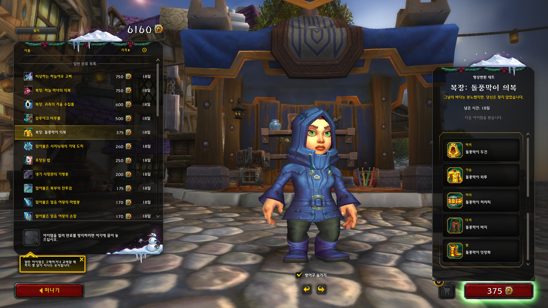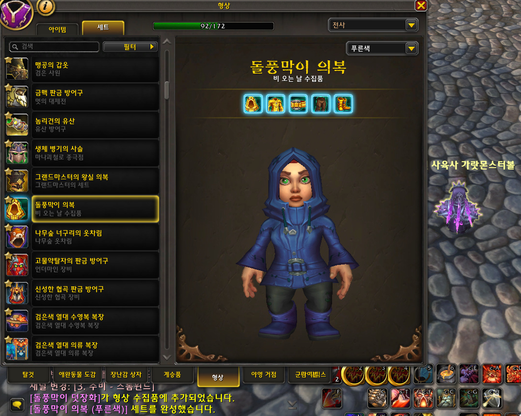 '돌풍막이 의복(푸른색)' 형상 세트 구입 및 수집 완료!!