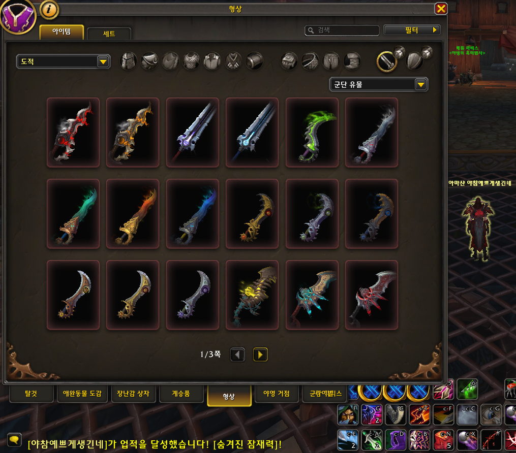 그리고 암살 도적을 끝으로 도적 히든룩 3종을 모두 모았습니다.