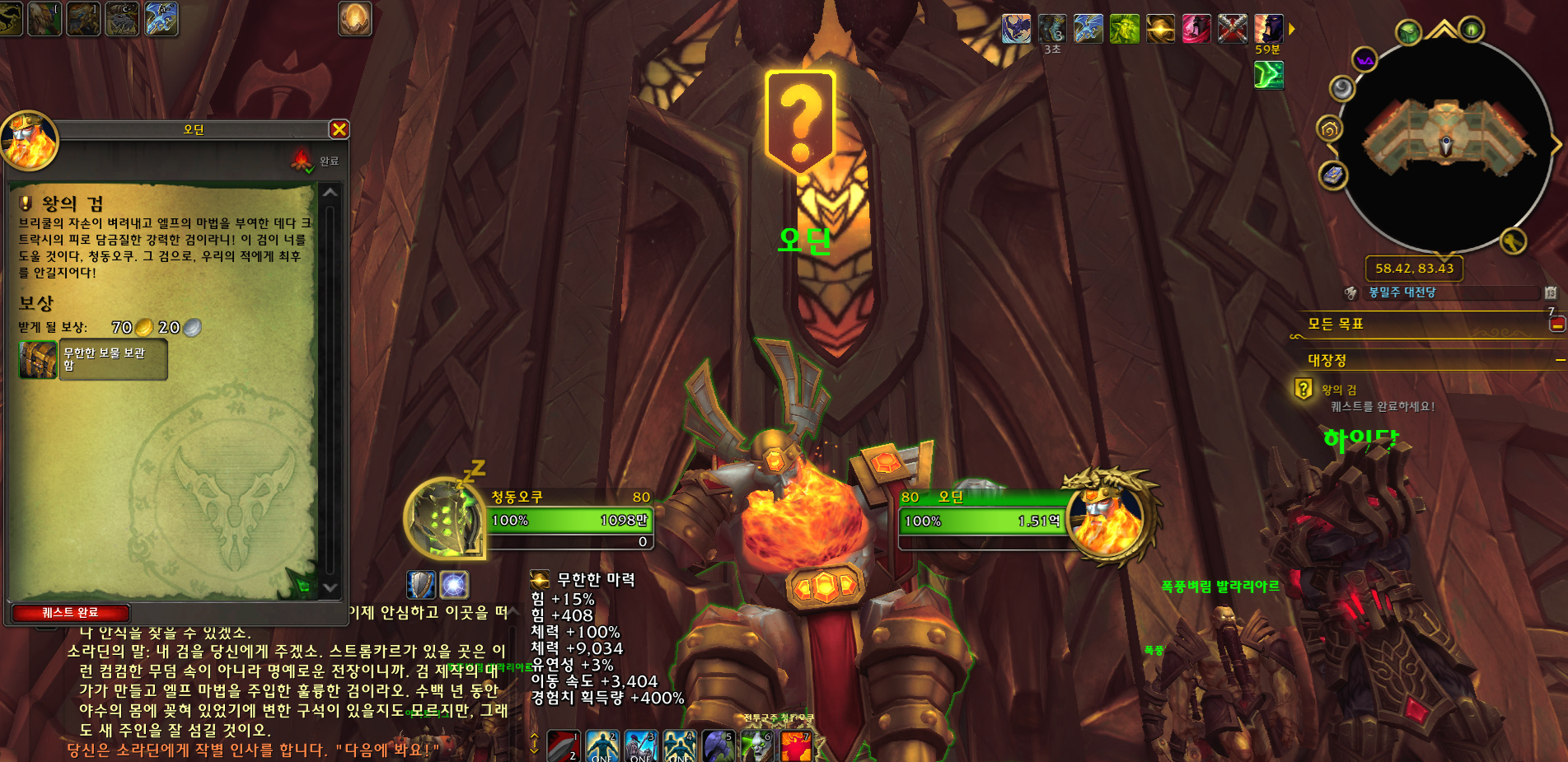 와우 군단리믹스 전사로 어제 방어 전문화 유물 무기를 획득하고 높은산 넬타리온의 석실에 있는 히든 형상을 획득하러 가봤는데 메시지가 안 나왔습니다. 다음날인 오늘 접속해보니 "앞쪽 동