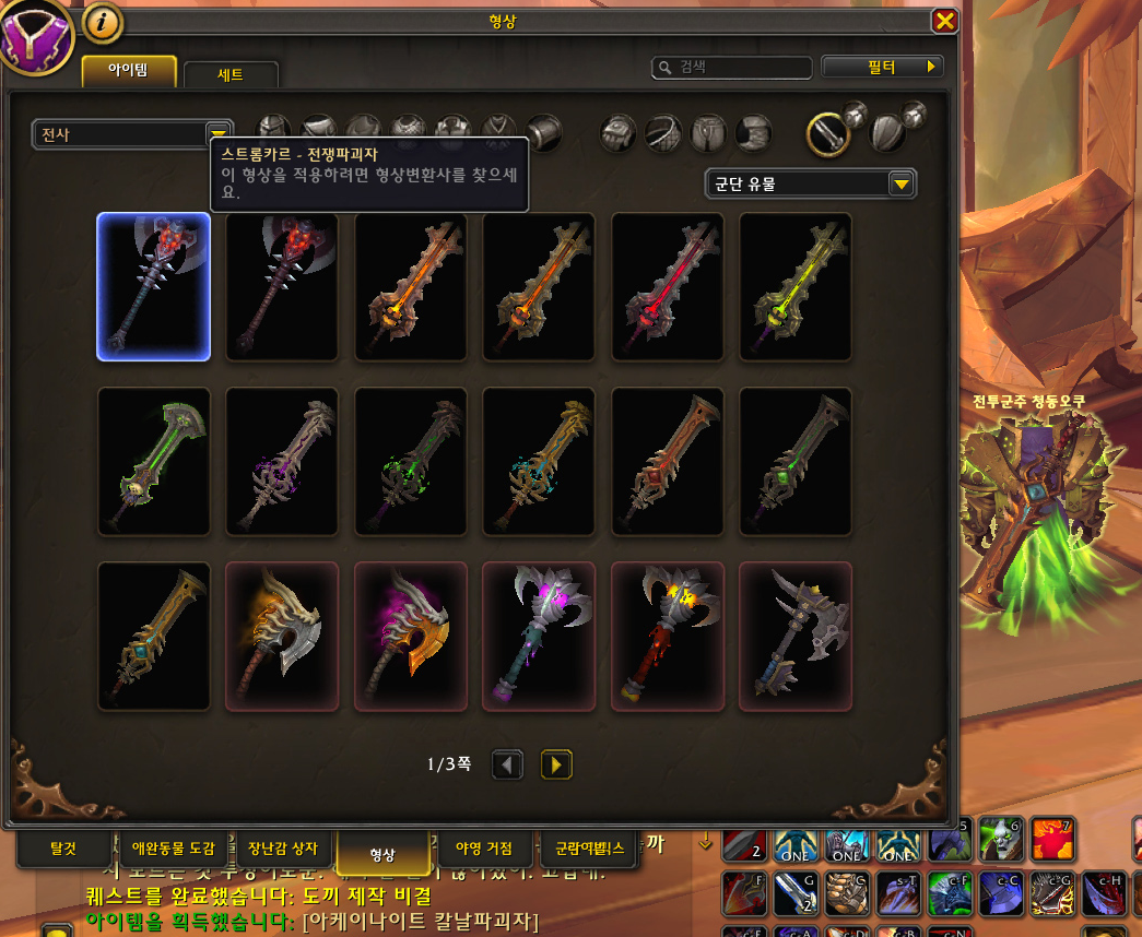 개인적으로 군단리믹스 꼭 해야 됩니다. 평판 올리기 쉽고, 여러 수집품과 유물 무기 히든 형상 등을 본섭보다 무엇이든 쉽게 얻을 수 있습니다. 이번 히든 형상글은 분노 전사입니다. 히든템을
