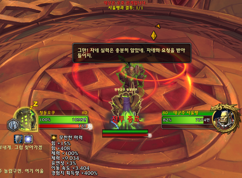 다시 하늘보루로 올라가서 헬가르에게 보고하고, 영예의 원에 들어가서 사울팽과 한 판 대련을 합니다.