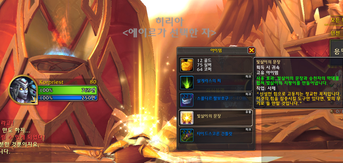 아직 얻지 못한 히든 중에 암흑 사제 히든템도 있는데 이것을 획득하려면 공격대 던전인 '에메랄드의 악몽'에서 '일기노스'를 쓰러뜨리면 낮은 확률로 드랍한다고 합니다.