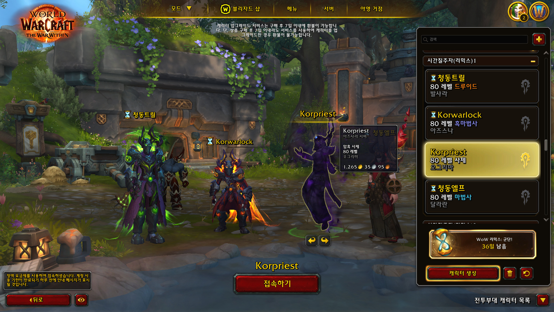 사제 캐릭 접종하고 다른 캐릭으로 접속해서 화폐창을 열고 모든 청동을 이전했습니다.